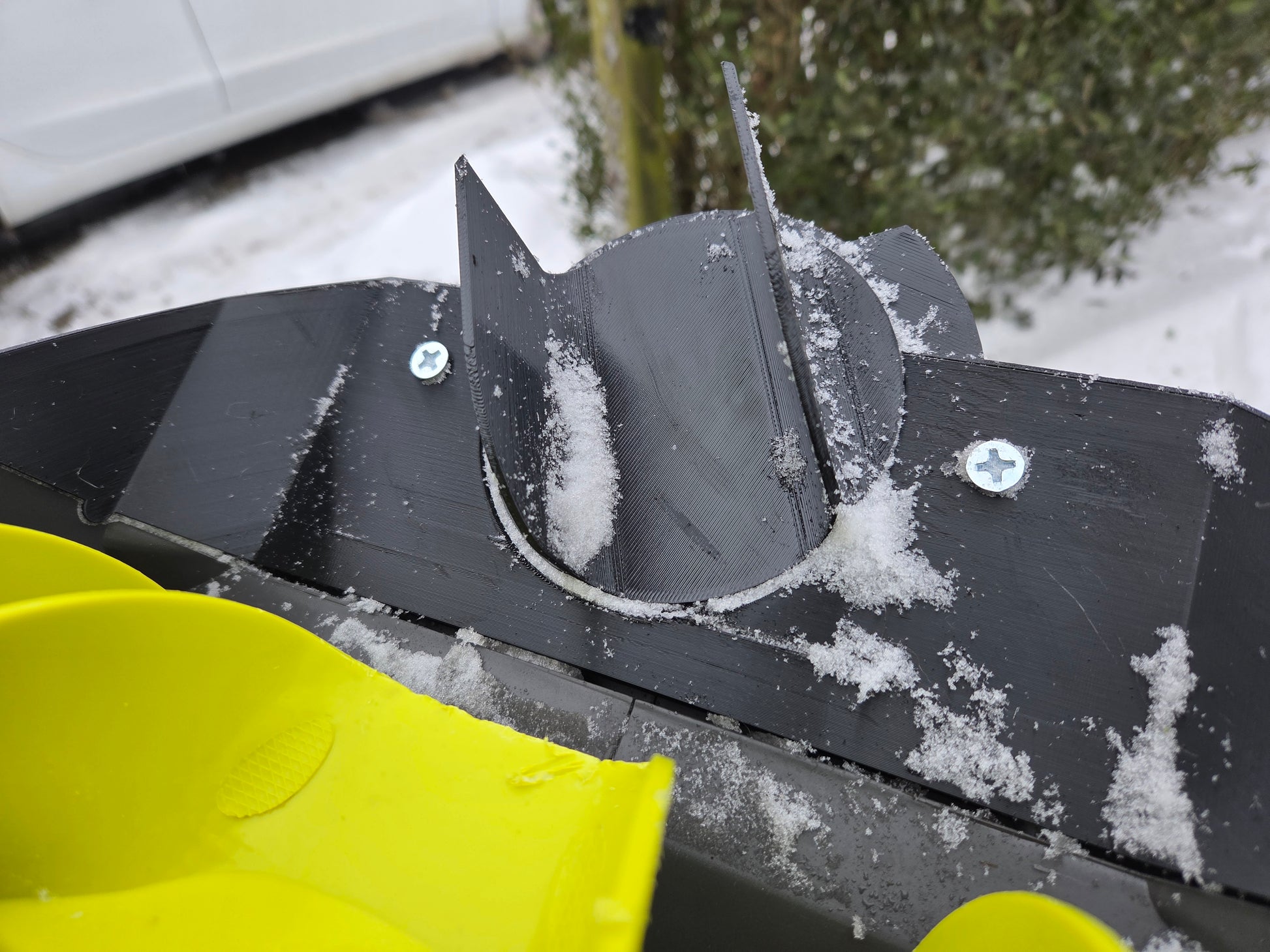 Opgrader din Ryobi sneslynge i dag og oplev forskellen med en justerbar 3D-printet udkastløsning, der gør vinterarbejdet lettere.